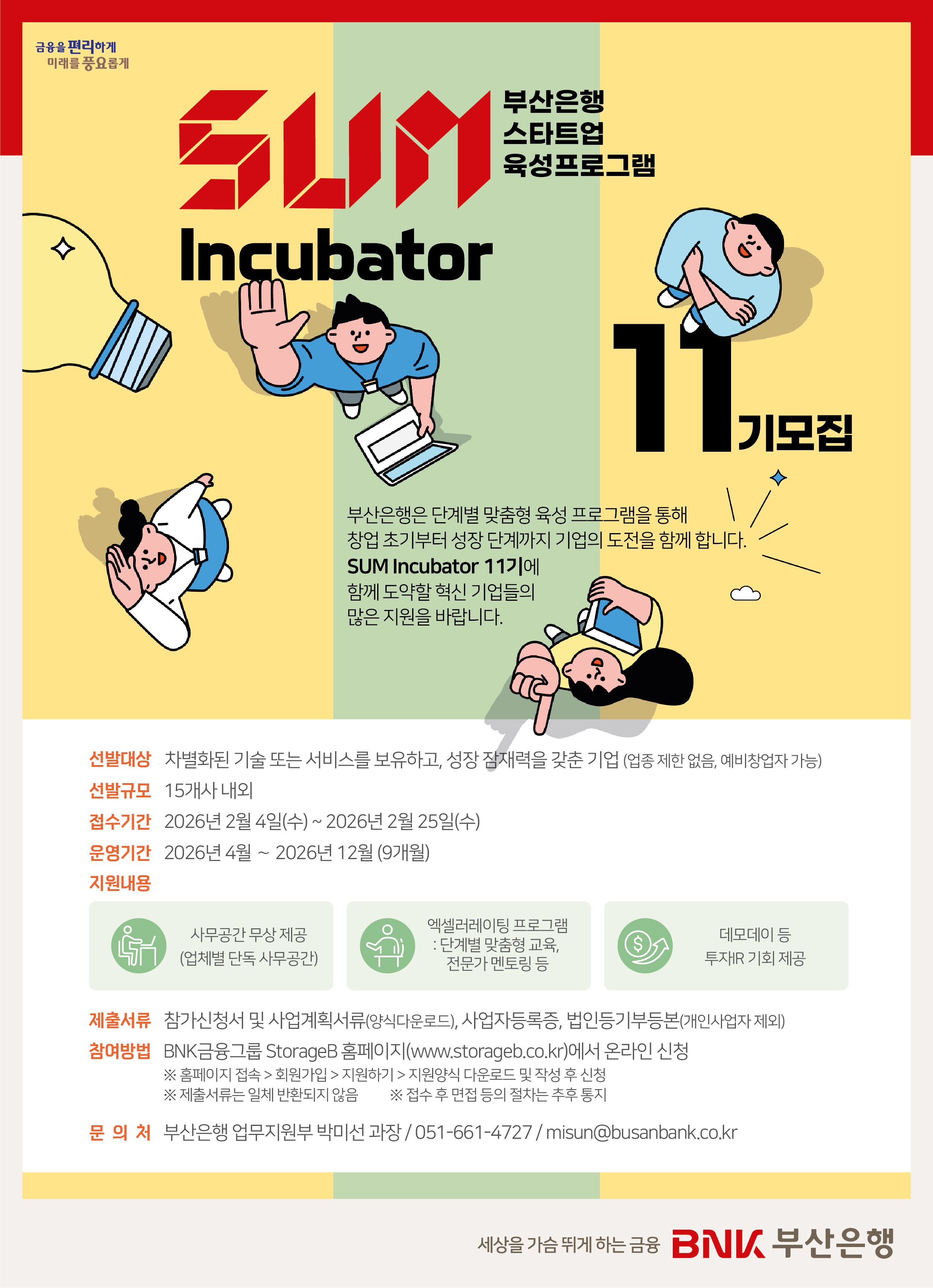 부산은행 스타트업 육성프로그램 'SUM Incubator' 11기 모집